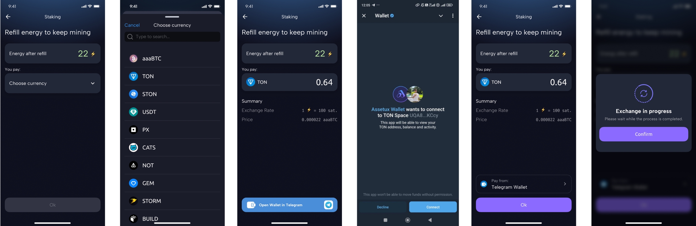 Omniston supports a growing list of tokens on TON. You can refill energy using: